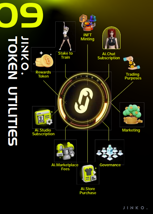 Jinko Tokenの多目的なユーティリティは、Jinko AIエコシステム内でのイノベーション、コラボレーション、および金融機会のダイナミックな触媒に変えます。ステークホルダー、開発者、または愛好家であるかどうかにかかわらず、Jinko TokenはAIとブロックチェーン技術のフルポテンシャルを引き出すための鍵です。